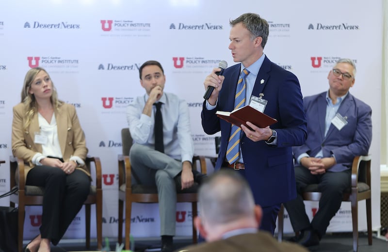 In the audience were politicians like Utah Republican Rep. Blake Moore and state lawmakers including Reps. Lowry Snow, R-Santa Clara; Gay Lynn Bennion, D-Sandy; and Joel Briscoe, D-Salt Lake City. Salt Lake City Mayor Erin Mendenhall also joined, sitting next to Salt Lake City Police Chief Mike Brown and a representative from Sen. Mitt Romney’s office. Academics from the University of Utah, current and past political candidates, lawyers, and stakeholders from around the West were in attendance as well.