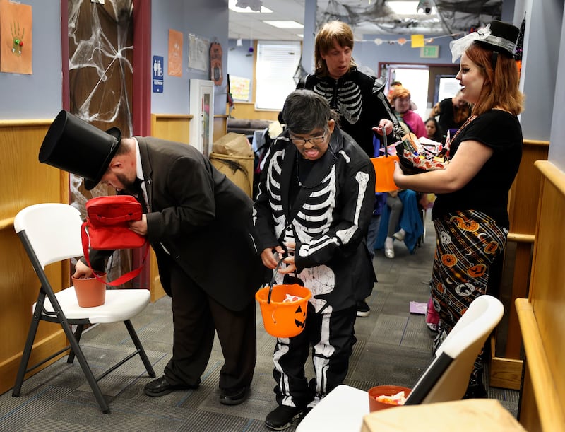 Monday saw them trick-or-treating along the hall of their own building after too few community members turned out for the originally planned trunk-or-treat. But staff and clients alike rolled with the setback and had a great time, anyway.