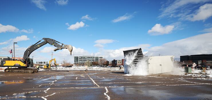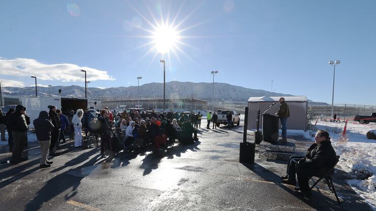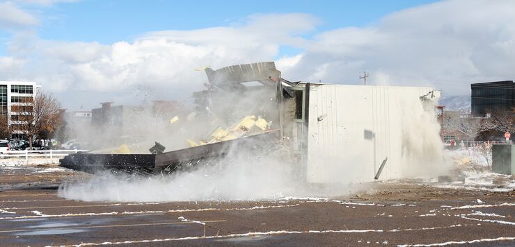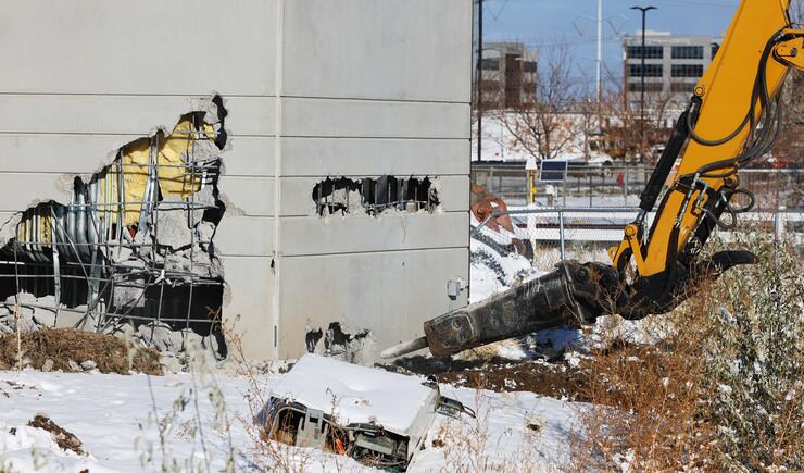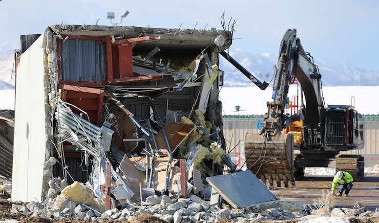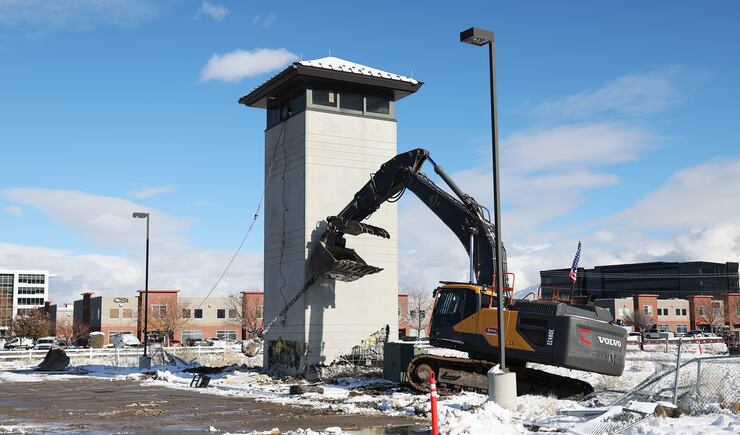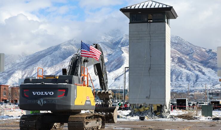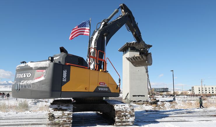 The demolition began shortly thereafter, although the guard tower refused to give way at first. More than 100 people waited in the cold, including several state lawmakers, former Utah House Speaker Greg Hughes, and several parents who brought their young kids to witness the spectacle.