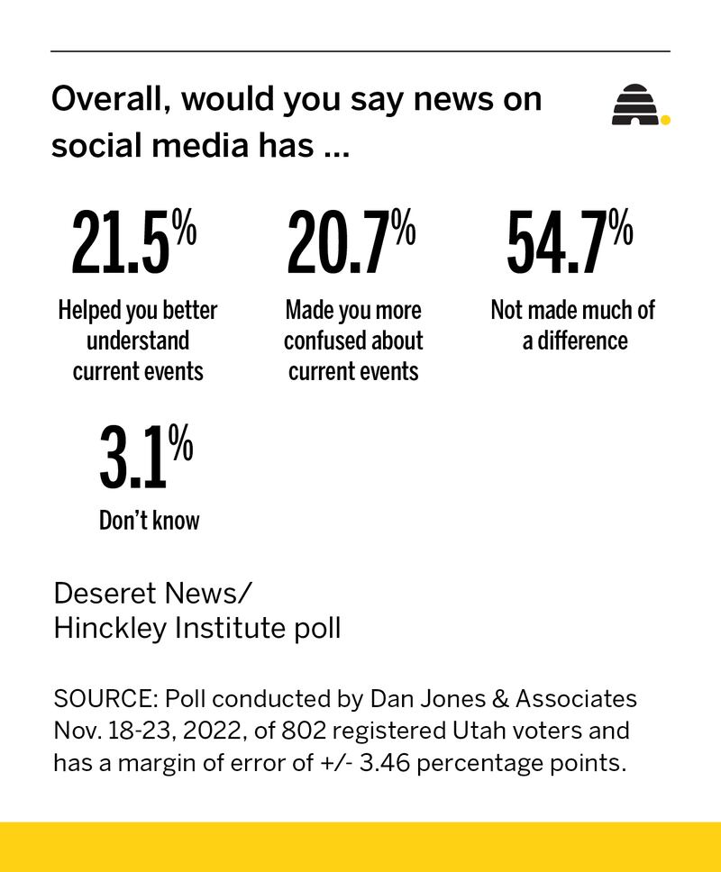 That, according to data gathered in a new Deseret News/Hinckley Institute of Politics poll that explored the current news habits of residents from around the state.