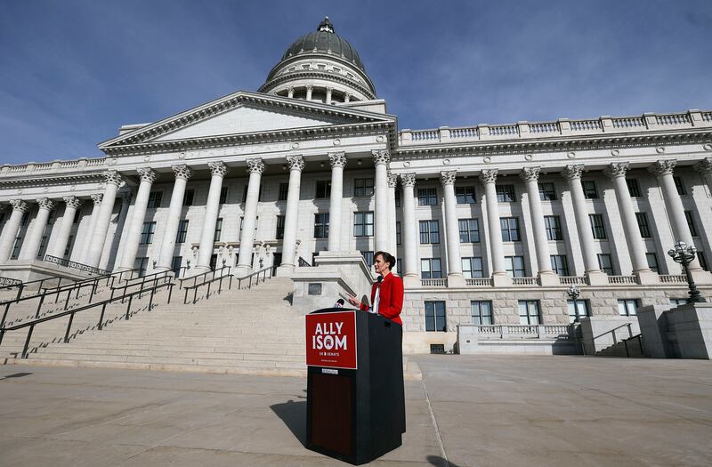 Isom said she found it “interesting that as we approached an election,” Lee didn’t sign on to Texas Sen. Ted Cruz’s last bill calling for a constitutional amendment on term limits. Isom said she would “absolutely” support a constitutional amendment on term limits.