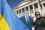 A Utah man, Gary Nilsen, of Taylorsville, carried two small Ukrainian flags in his hands as he stood on the steps among the crowd. He spoke in a quiet voice, compelled to show his support for a country on the other side of the world but close to his heart.