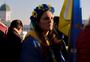 During the rally, a violinist played Ukraine’s national anthem. Some voices in the crowd could be heard singing the anthem as she played. The crowd also broke out into several chants, including one to “stop Putin” and another for Zelenskyy.