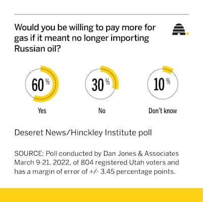 The new Deseret News/Hinckley Institute of Politics poll surveyed 804 registered Utah voters March 9-21, in the midst of escalating prices of crude oil as the global energy supply continues to tighten.
