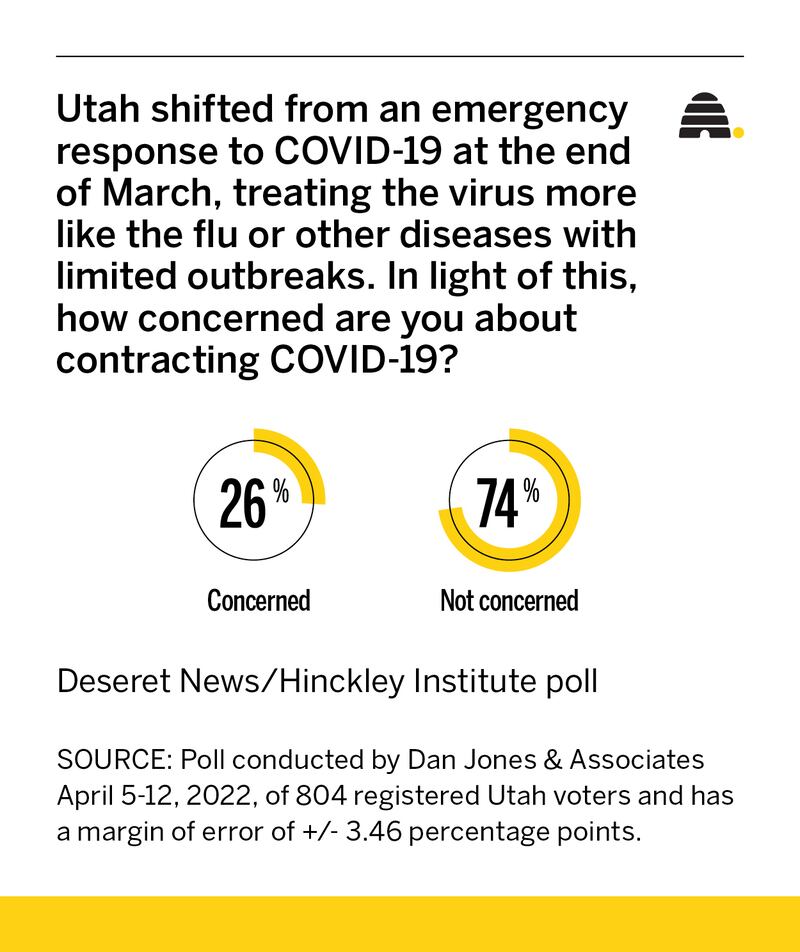 “If something happens with the virus, and the numbers start to go up dramatically, I have no doubt based on our history of polling that concern will go up in a corresponding way,” he said, including a previous poll that showed more than half of all Utahns feared the omicron variant of the virus that struck the state earlier this year.