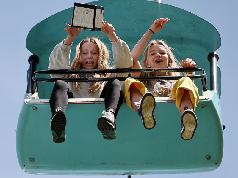 This year’s educational activities and contests — including a robotics competition and a model amusement ride competition — also featured the popular egg drop from the park’s sky ride.