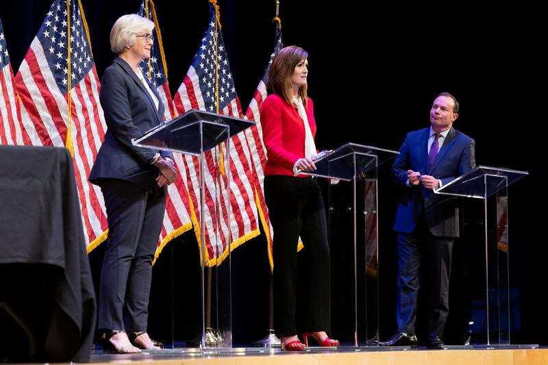Lee and his challengers, Ally Isom and Becky Edwards, sparred over who should represent Utah in the U.S. Senate over the next six years while fielding questions curated by the Utah Republican Party over abortion access, election security, school shootings, immigration and more during the debate held at Draper Park Middle School.