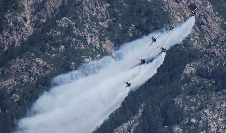 The clear, blue skies over Hill Air Force Base were overtaken Saturday by stunning, death-defying displays of aerial prowess as the “Warriors Over the Wasatch Air and Space Show” returned to Utah after a four-year hiatus.