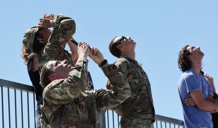 Just before noon, the base tweeted that "gate entry into the base has been temporarily paused to allow the lines inside to catch up and shorten," before reopening the gates less than an hour later.