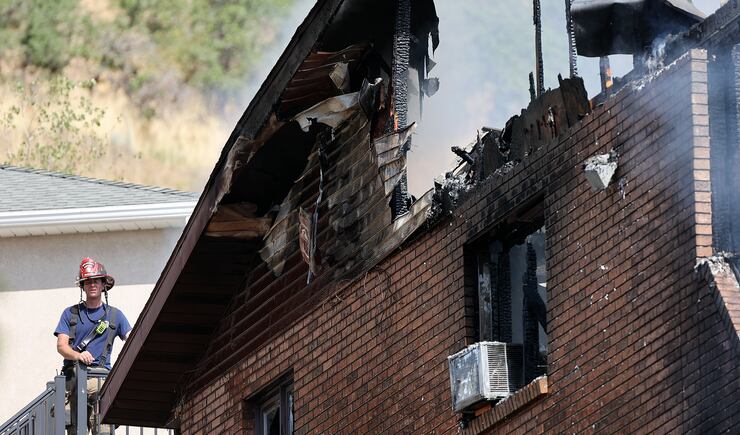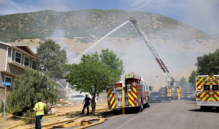“Our primary concern was not only the home fire, but the hillside. As you can see, the home sits fairly close to that,” said South Davis Metro Deputy Fire Chief Dave Powers, pointing to dry grass on the nearby mountainside.