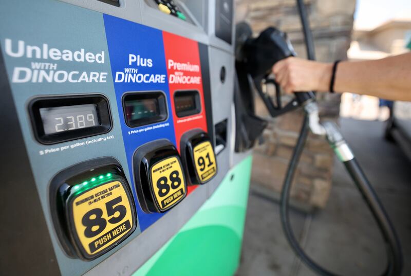 The state's average price for unleaded gas Tuesday was $4.91 per gallon — higher than the national average of $4.33 — according to AAA. Americans for Prosperity chose $2.38 per gallon since it was the national average in mid-January 2021.