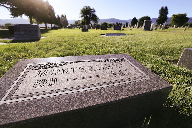 Sitting unassumingly in the A plot of the cemetery is a small headstone that simply reads: "Monte R. Merz, 1911-1965." Next to that is an identical headstone where Merz's mother is buried and a sibling's is nearby. Merz's mother died three years after her son. For many years, Monte Merz's grandchildren in Utah were told that he died in a car crash.