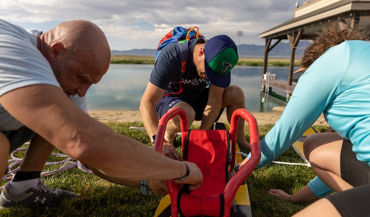 Mountain Land PT furnishes the food, beverages, volunteers, Rick’s house as the launch point and, most importantly, the lakes. Neuroworx provides its patients as water skiers, additional volunteers and, most importantly, Matt Hansen, a linebacker-sized therapist — dubbed “The Crane” by Rick — who makes lifting prospective water skiers from wheelchairs to water skiing sleds look effortless.