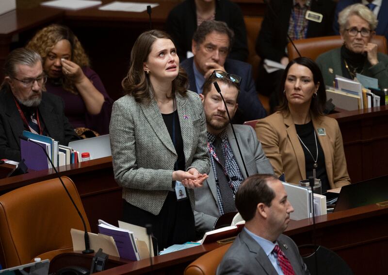 Rep. Sahara Hayes, D-Millcreek — currently Utah’s only openly gay legislator — also spoke against the bill. Her voice filled with emotion, she said “someone very close to me is trans,” and she described the difficulties of living knowing “you’re never going to have the body you want.”