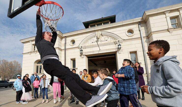 The children returned to the library as Gov. Cox placed a star atop the tree, after which one student asked him to perform a backflip. Although he declined, Cox did invite the children outside for a quick game of basketball.