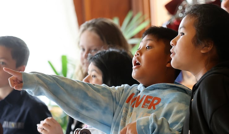 Cox then led the children on a tour of Kearns Mansion, which is the official residence for the governor’s family. Cox explained that it was built 120 years ago by Thomas and Jennie Kearns, who also built a nearby orphanage. Jennie Kearns donated the mansion to the state of Utah after Thomas’ death.