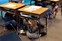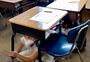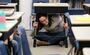 Aside from the occasional excited whisper or curious head popping out, they sat quietly and gripped the metal desk legs for five-and-a-half minutes, until the clamor stopped and they emerged with sighs of faux relief.