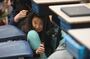 Weigel reviewed what the students were to do a few minutes before the drill, demonstrating how to walk along the wall to the nearest doorway if they were caught in a hallway during an earthquake.