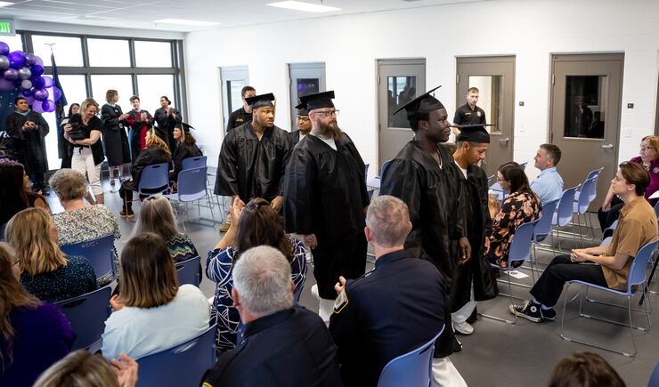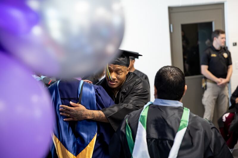Even in a locked-down facility, men and women serving time for an array of criminal convictions had a glimpse of normalcy Monday, as they marched to the podium, with “Pomp and Circumstance” softly playing in the background to be awarded their diplomas. Some celebrated in brief receptions afterward, one each for the male and female graduates, although they jointly participated in the graduation program.