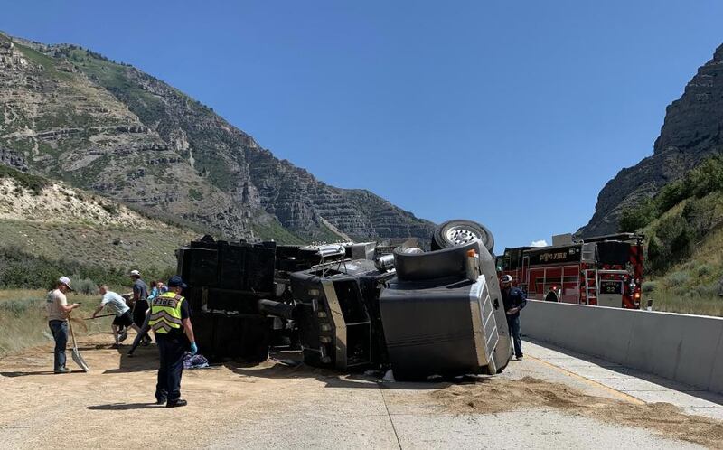 The truck left the roadway to the right shoulder while navigating a curve, and then came back to the left and overturned, according to Utah Highway Patrol Sgt. Cam Roden. Westbound lanes near Canyon Glen Park were closed for nearly two hours while crews cleaned up the roadway.