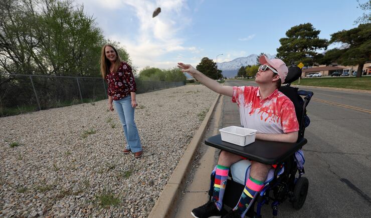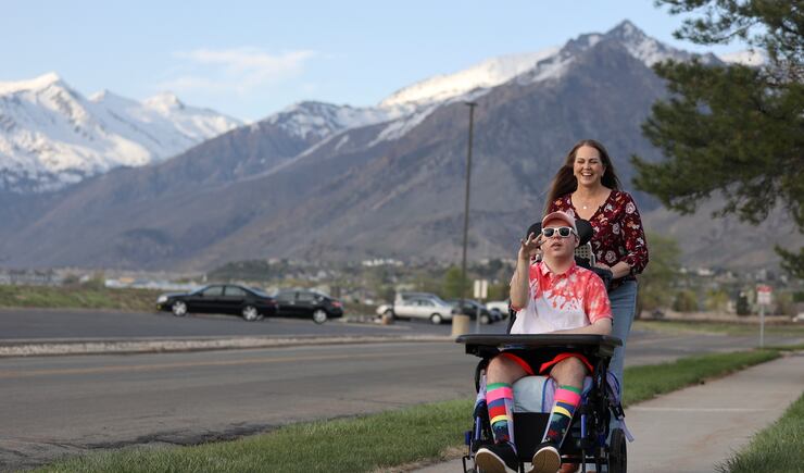 I will meet up later with May at the state developmental center in American Fork where Stockton has lived since 2018. She or someone in her family visits him four or five times a week. Visitors aren’t allowed in residents’ rooms right now, so they have to meet in a conference room or outside. This warm spring day, outdoors beckons.