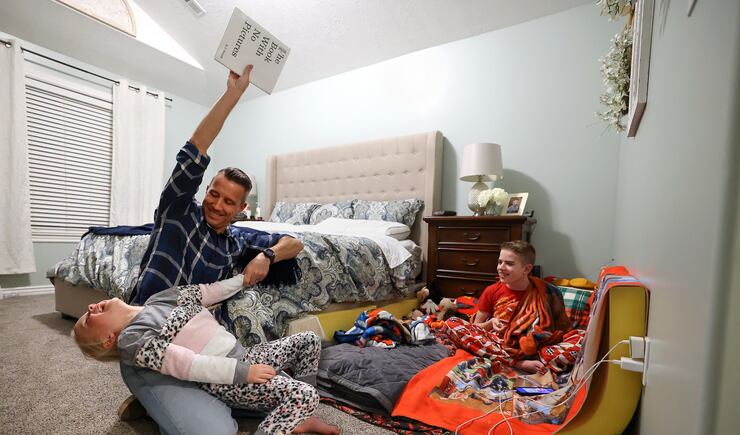 “Connor church” might include a drive to Maverik for a soda or McDonald’s for french fries or to the park. Or a walk inside an actual church well after the congregation has left. The six-hour visit ends with a bath — a bubble bath, thanks to the bottle of dog shampoo Connor dumped into the tub when his mom wasn’t looking. This is how Sundays go in the Campbell home.