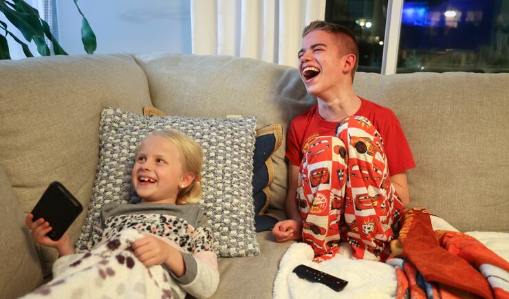 April Sintz has dashed off to a midweek youth church meeting, leaving her husband, Kyle, with Isaac and two younger siblings. Isaac has eaten all of his dinner, something he doesn’t always do. He settles on the couch to watch his favorite “Cars” videos. He is Lightning McQueen. He pronounces it “Lo Queen.” Kyle is Mack. April is Sally. He can go from giggly to empty. Isaac smiles and laughs, belly laughs, often on this night.