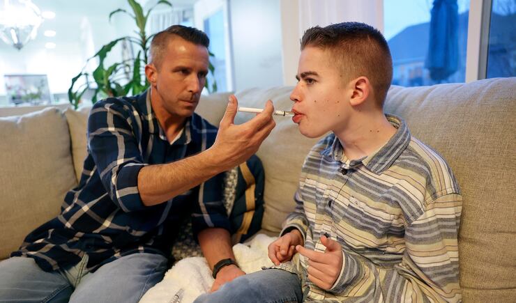 Campbell’s 16-year-old son Connor also lives at the developmental center. He’s seized from birth. He is cognitively and behaviorally the most acute of any of the kids in this group. He responded well to higher levels of THC, but he can’t have it now that he’s in state care.