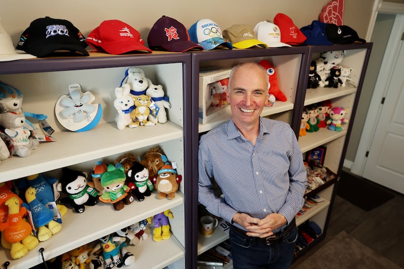 A small back room on the first floor of Darren Hughes’ Cottonwood Heights home is filled with Olympic memorabilia, including dozens of colorful stuffed mascot dolls dating back to Utah’s 2002 Winter Games.