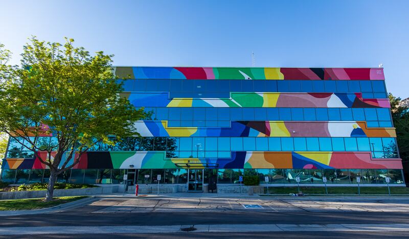 "I wanted to mimic, in an abstract way, the way that the hills and the mountains kind of flow across the landscape. That's something that I felt I could represent visually and also bring a much of colors that would be bright and elevating to the mind," he said. "I also wanted to take a building that might seem intimidating ... and kind of brighten it up so people who are visiting that space come in there maybe in a better mood."