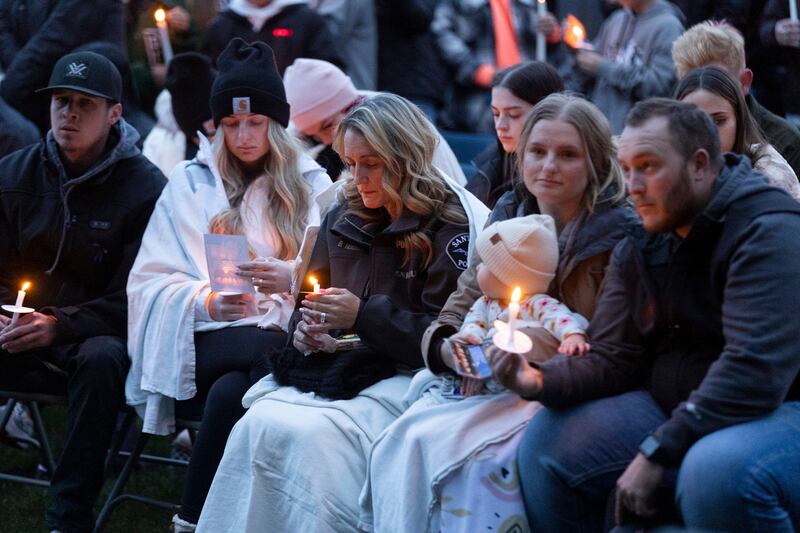 Emme McDowell, the daughter of a Santaquin police officer, sang "Amazing Grace," then everyone lit candles and honored Hooser with a moment of silence.