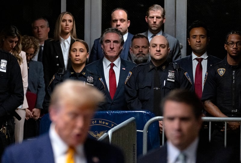 Trump’s supporters in New York City are seen as stepping in for the former president who is under a gag order during his trial on felony charges of falsifying business records. Tuesday, the House speaker called the trial a “sham” and said, “It’s all about politics.”