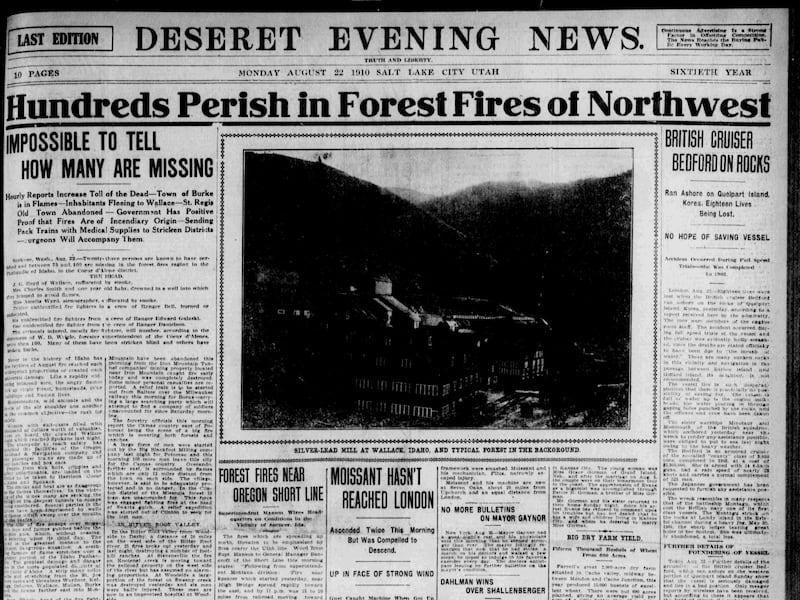 In late summer 1910, a series of wildfires swept through parts of Idaho, Montana and Washington, killing at least 87 people and burning some 3 million acres. It was referred to the “Big Blowup,” the “Big Burn” and “Great Fire of 1910.”