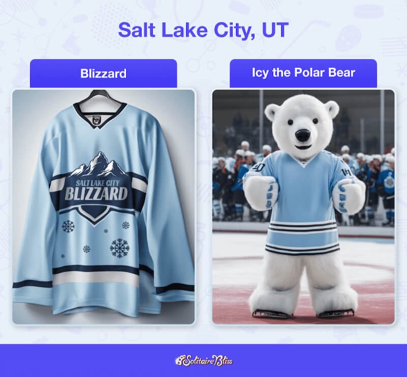 AI was a little more creative when it came to an NHL team. How does Salt Lake City Blizzard sound? (Might be fitting with how the snow is flying this week.) The polar bear mascot is called Icy.