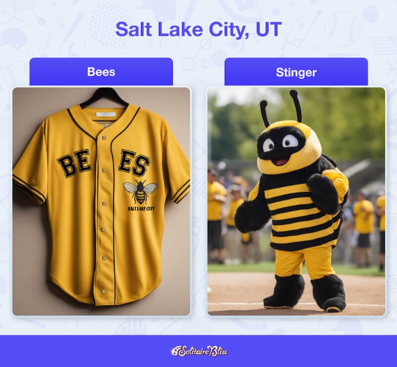 “The Salt Lake City Bees celebrate Utah’s emblematic beehive symbol and its moniker as ‘The Beehive State.’ Their mascot, Stinger, is delightful AND enthusiastic, with plush yellow-and-black stripes and friendly, oversized eyes that immediately endear this mascot to fans.