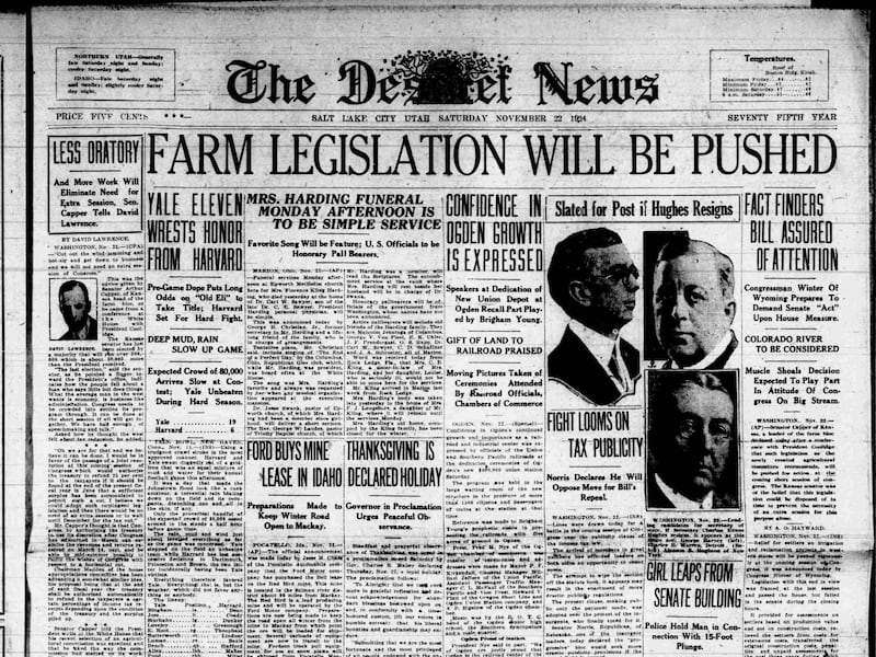 “Confidence in Ogden growth is expressed; speakers at dedication of new union depot at Ogden recall part played by Brigham Young,” read the front page headline of the day.