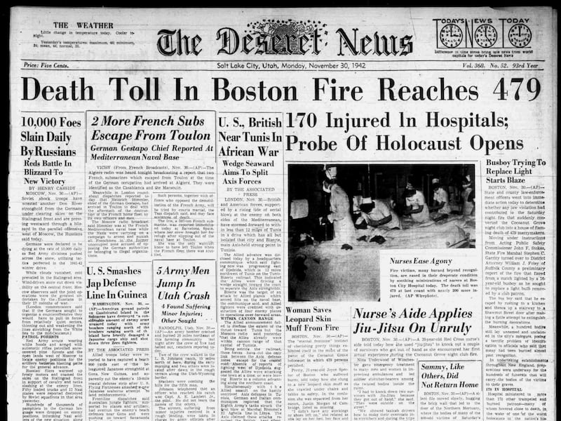 Here are some stories from the Cocoanut Grove fire of 1942, how those who lost their lives are remembered, and reports of other such tragedies around the world:
