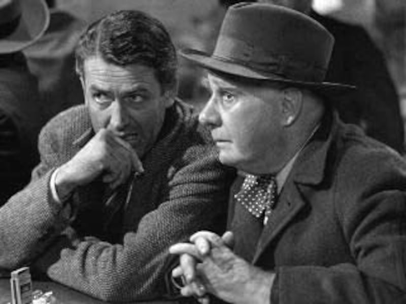 Directed by Frank Capra, the film received five Academy Award nominations, including best picture and best actor for Stewart, though its box-office performance and reviews were lackluster. Donna Reed played George’s wife.
