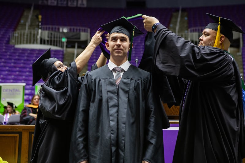 Correction: An earlier photo caption misidentified the Weber State graduate. The graduate is Collin Stoker.