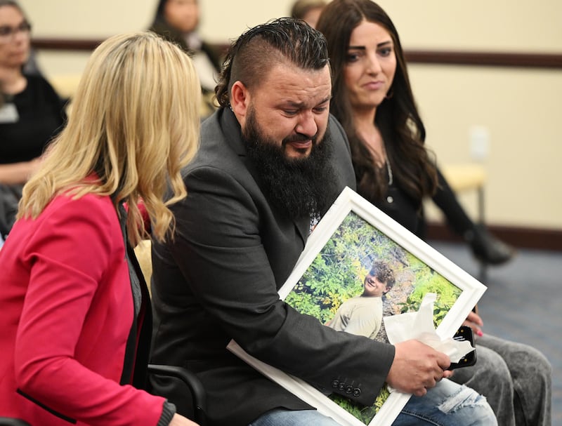 Karl and Brittney Obray came as part of Teuscher’s presentation after Johnson’s remarks. “Like Liddy said, a lot of kids don’t have a second chance or a happy ending. Our son was one of those that didn’t have a happy ending,” Brittney Obray said, holding up a picture of her son.