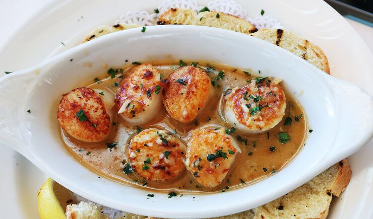 The jalapeño poppers, wrapped in bacon and filled with cream cheese, are spicy enough to wake up the most fatigued diner, but not painful. The scallops, served in a pool of butter and served with toasted bread, were both rich and delicate, and the latkes were fried to just the right crispiness. My salad was the perfect blend of peppery arugula, runny yolk and buttery trout.