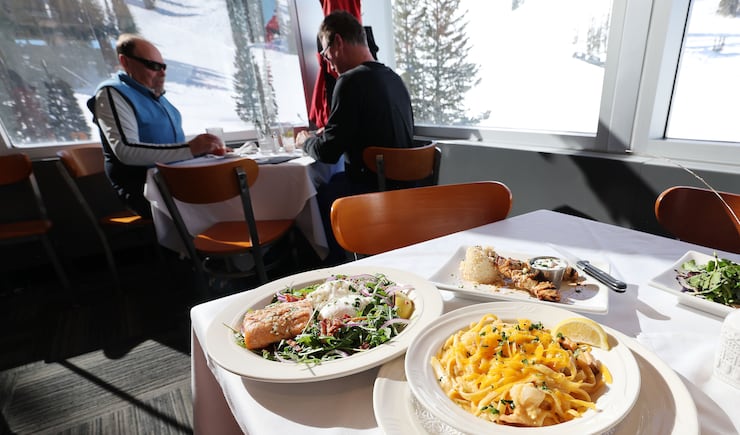 All the traversing, side-stepping and the long mogul runs at the end of the hiking work up an appetite, and so Huskinson meets my husband and I at the Collins Grill on the third floor of the Watson Shelter.