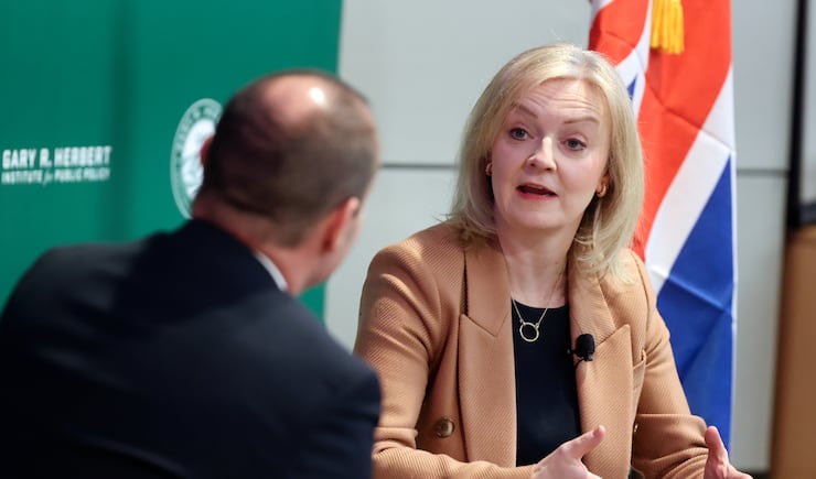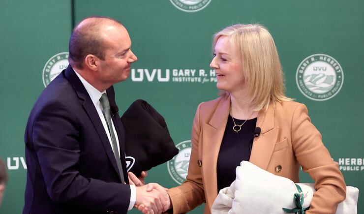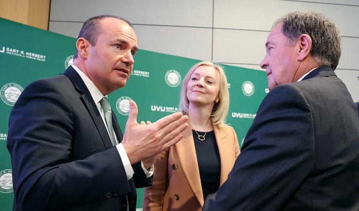 Sen. Mike Lee, R-Utah, and Liz Truss, former U.K. prime minister, spoke as part of the Gary R. Herbert Institute for Public Policy’s forum series. Truss served as prime minister for about seven weeks in 2022.