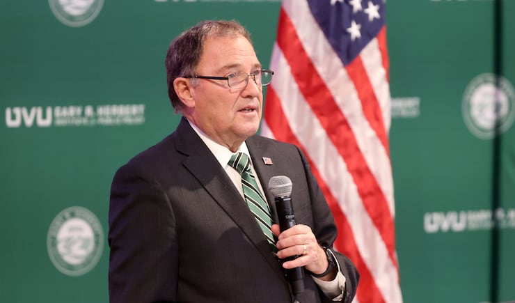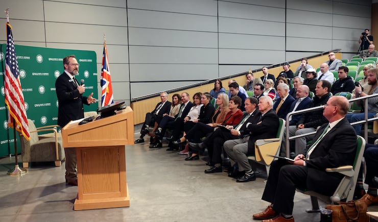 With flags from the United States and United Kingdom behind him, former Gov. Gary Herbert welcomed two speakers from either side of the pond to Utah Valley University Tuesday for a conversation about why they believe limited government is critical for the future.