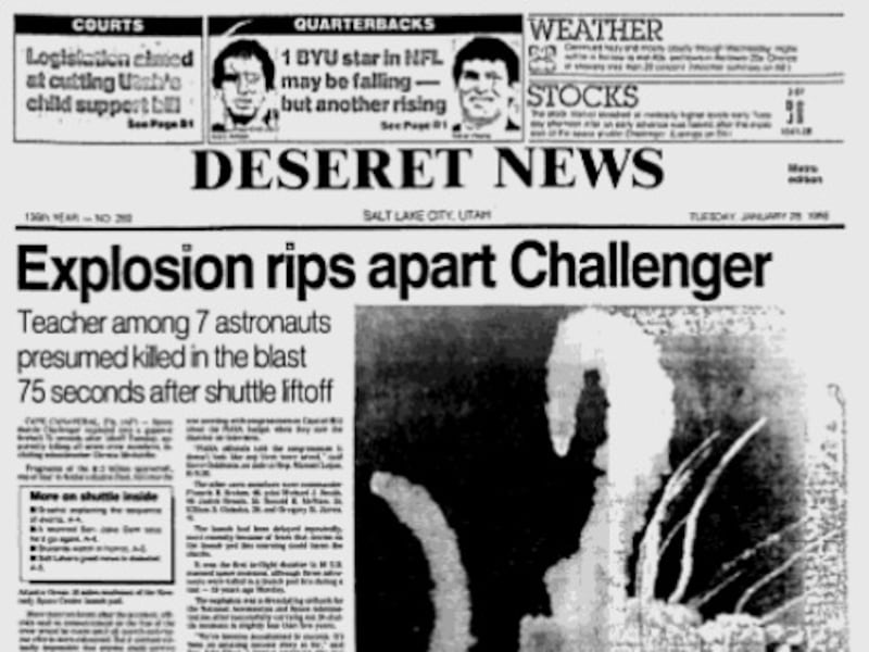 Many of us were watching the liftoff live, and were horrified with what we saw. The Deseret News had followed McAuliffe’s preparation and now followed the sad aftermath. President Ronald Reagan, who was also watching the liftoff live, gave a heartfelt speech later that day.