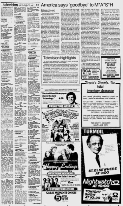 The 2½-hour episode, titled “Goodbye, Farewell and Amen,” ended the show’s amazing run. The show, of course, lives on in reruns and binges and digital collections. News reports indicate the episode was written by eight collaborators, including series star Alan Alda, who was the director.