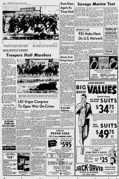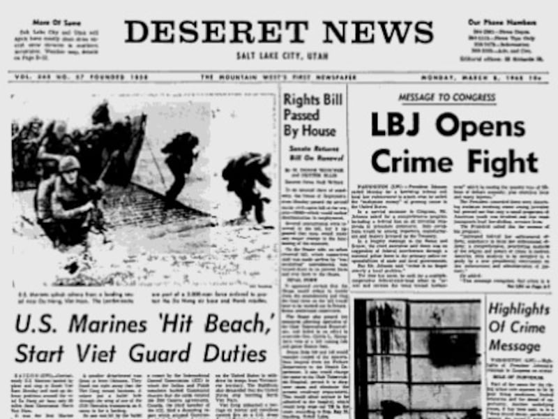 This was a volatile time in America, and the front page of the Deseret News on Monday, March 8, reflected those many issues. Here are some of the headlines: