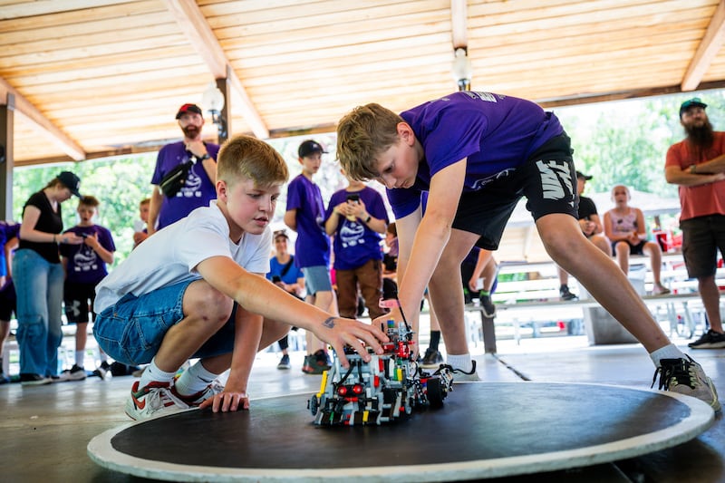 “A guy named Jeff, who works at the Air Force, came and helped us. From experience, we learned how to make this,” said one bot-fighting student, Emmyr Suarez. “We can knock down other robots.”
