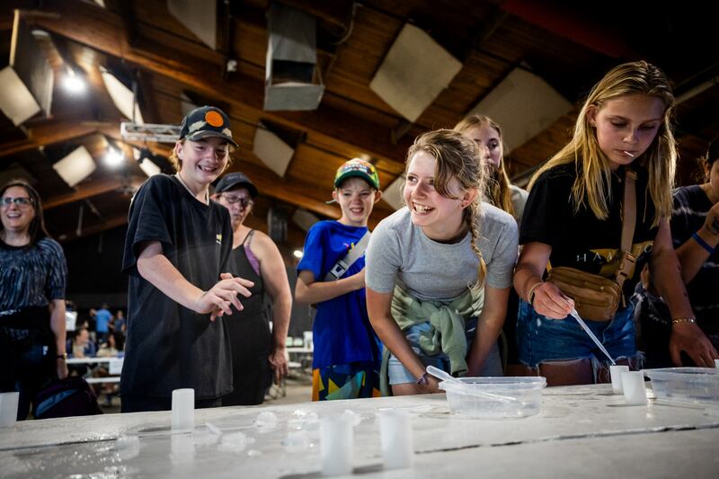 FARMINGTON — High school and middle school students from across the state arrived at Lagoon Friday to learn more about physics. To prepare for the trip, each student works on some type of project in class and presents it fair-style at the amusement park.