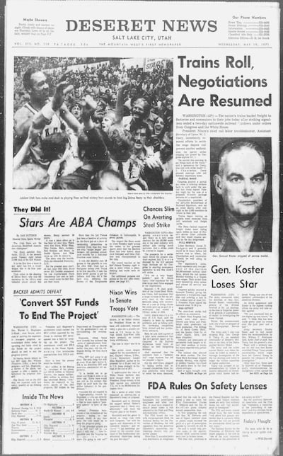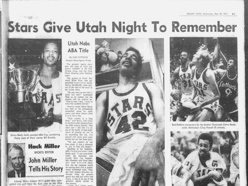 For the 30th anniversary of the Stars’ ABA title, the Deseret News game story that appeared May 19, 1971, written by Dan Pattison, was reprinted. Here is part of that story. Pattison, the only Stars beat writer the Deseret News had, died in 2001: